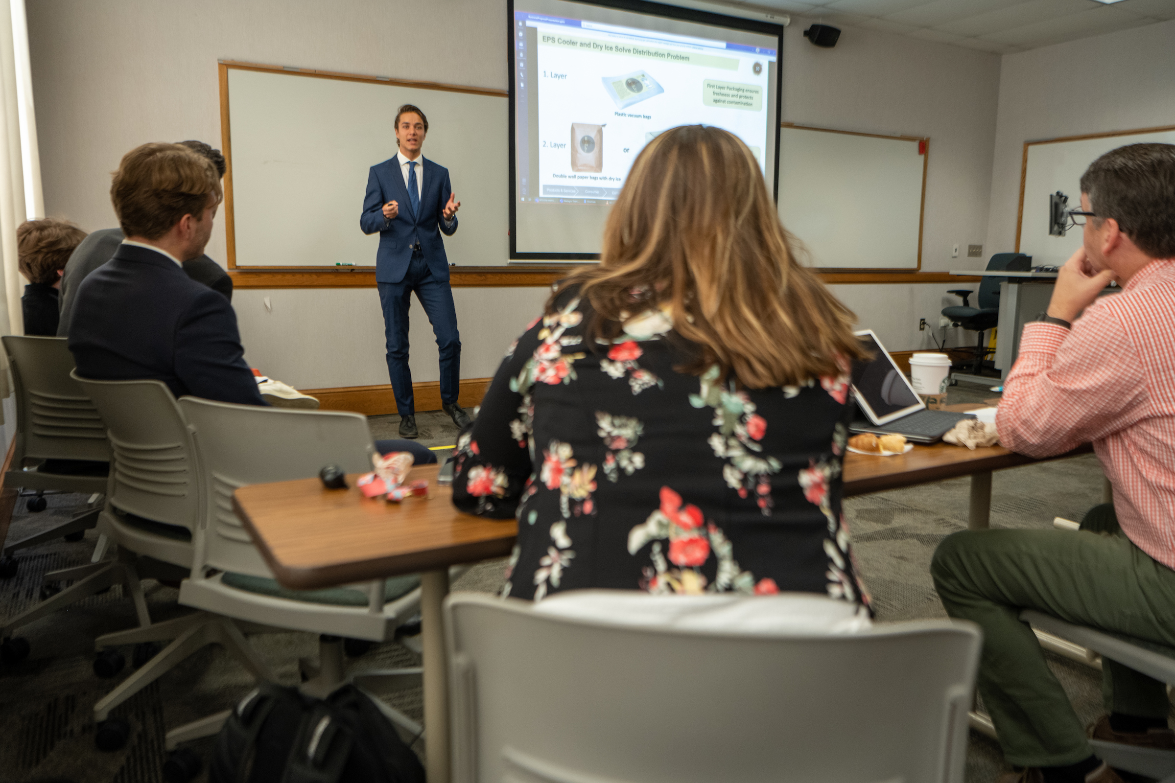 Students join “Copeland Associates,” a fictitious firm that provides clients with business analytics and consulting support, and act as Junior Associates, or "new hires.” Then, faculty take on the role of Senior Partners to guide associates through a series of progressively complex business problems, working to integrate and apply knowledge from each discipline. Emphasis is placed on critical thinking, effective communication, teamwork effectiveness, integrative learning, and professional accountability.