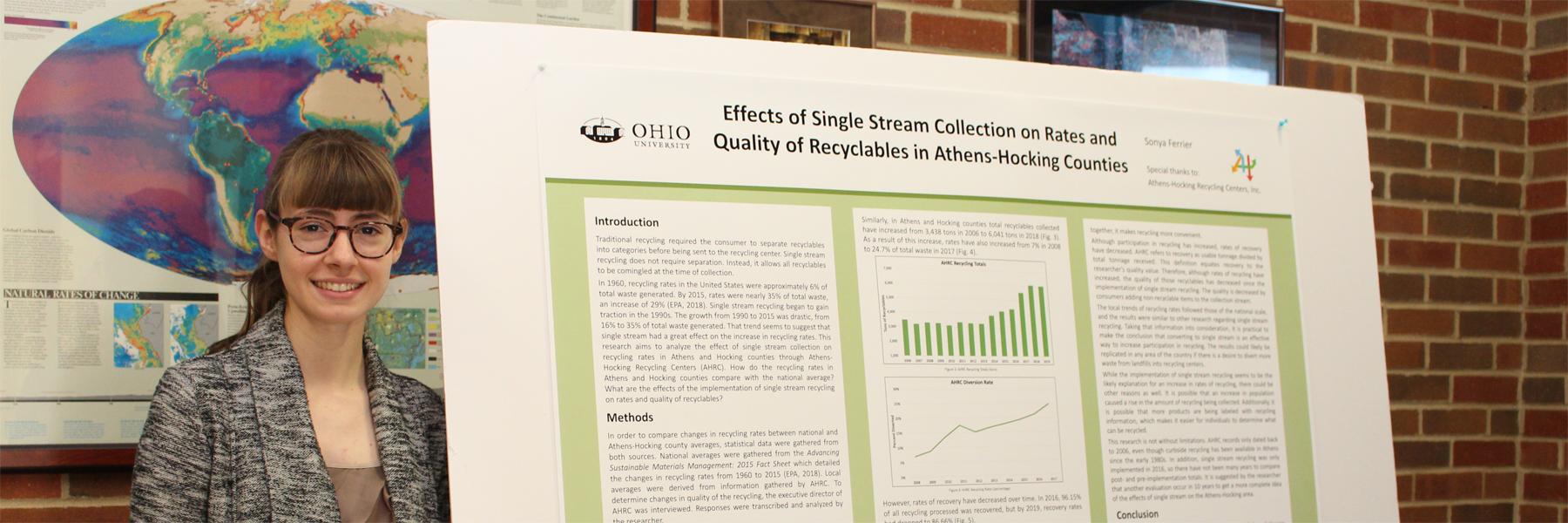 The Geography Department at Ohio University is committed to excellence in both teaching and advising. Several of our faculty members have received teaching awards. We are known across campus for the highest quality of student advising. As a geography major, you will meet one-on-one with your faculty advisor every semester during advising week, and you are always welcome to talk with your advisor at any time throughout the semester whenever questions may arise. In addition to advising our students about their academic programs, we provide timely information about internships, nationally competitive awards, and other opportunities as they arise. Many of our students complete internships and several of our students have received nationally competitive awards.