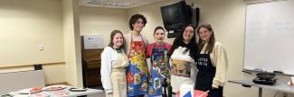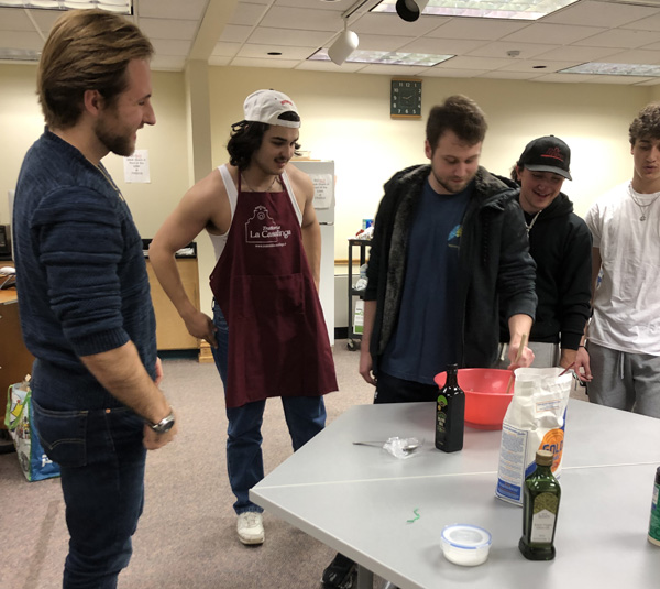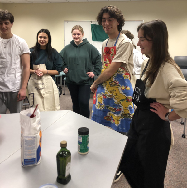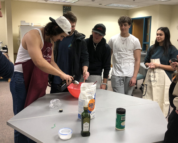 Dr. Morrison teaches the Italian Club how to make the central Italian dish “torta al testo” at a cooking lesson: