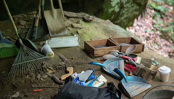 Excavating, analyzing, and interpreting material remains.