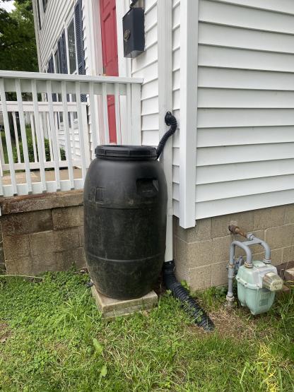 Rainwater: Two rain barrels - one at the front of the house and one on the side - collect rainwater from the gutters. The water collected is used on landscaping, in the garden, and for household efforts.