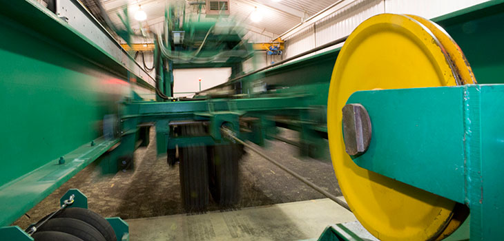 The loading mechanism in the environmentally controlled chamber of the Accelerated Pavement Load facility helps ORITE researchers evaluate the effects of various environmental conditions, materials, and load levels on a variety of pavement structures. By applying repeated loads over sections of pavement under rigidly controlled conditions, overall relative performance can be assessed much earlier and with much greater confidence than by observing test sections constructed on in-service pavements. The APLF has several attributes which set it apart from similar facilities in the U.S. and around the world. Major features include these: