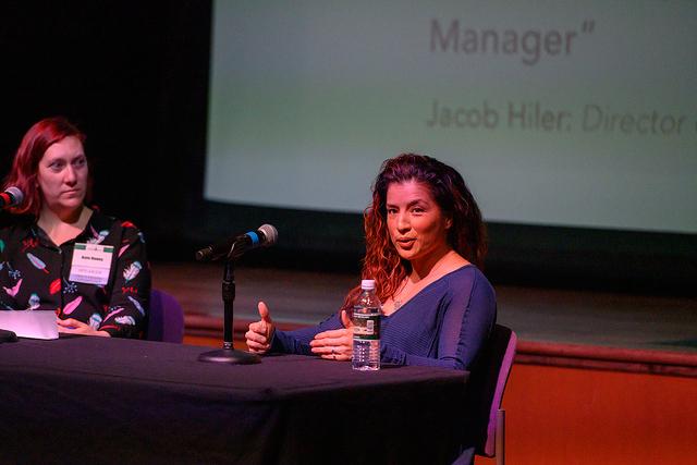 The "How to Get a Job in the Digital Games Industry" session was moderated by Kate Raney (left), lecturer in the OHIO School of Media Arts and Studies. Presenter Susan Cenci (right), associate product art director at Deep Silver Volition, told the students how to make themselves more marketable in the gaming industry.