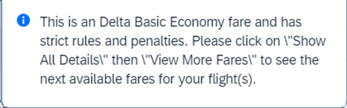 If you click the orange indicator, you will see the following message popup, as it relates to Basic Economy Fares: