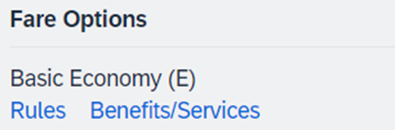 While basic economy fare is available in Concur and through Christopherson Business Travel (CBT), per campus user requests, you do assume some risks when purchasing this type of airfare. If you are booking travel on behalf of someone else, make sure the traveler understands the restrictions that may impact their travel. However, if the fare meets your business need and you are willing to accept the risks of a basic economy fare ticket, just be sure to read the ‘fare rules and restrictions’ (as shown below) to ensure you understand the caveats associated with your purchase.