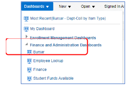 PeopleSoft student account transactions are processed to Oracle eBiz nightly for the previous day’s transactions. The entries are posted in summary by account string. To view the details of summarized entries, departmental users can view PeopleSoft Student Account Transactions by utilizing the Bursar Dashboard in OBI – Oracle Business Intelligence.