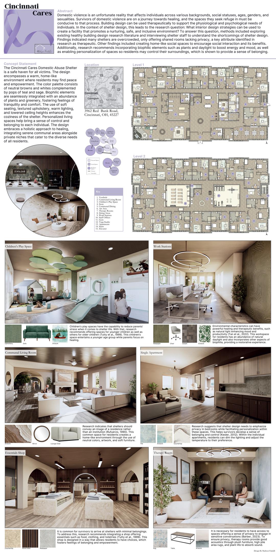 The topic I chose for my thesis project is to develop and design an all-inclusive domestic abuse shelter. Establishing a shelter for all victims of domestic violence is extremely important to me, as I believe that all people regardless of their backgrounds, social status, gender, and sexuality, deserve a safe haven to heal and rebuild their lives.