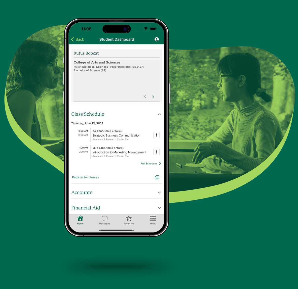 Go OHIO was designed with input from OHIO students every step of the way and allows Bobcats to quickly find their class schedules, GPA, advisors, Catmail, financial aid, meal plan balances and more — all in one place.