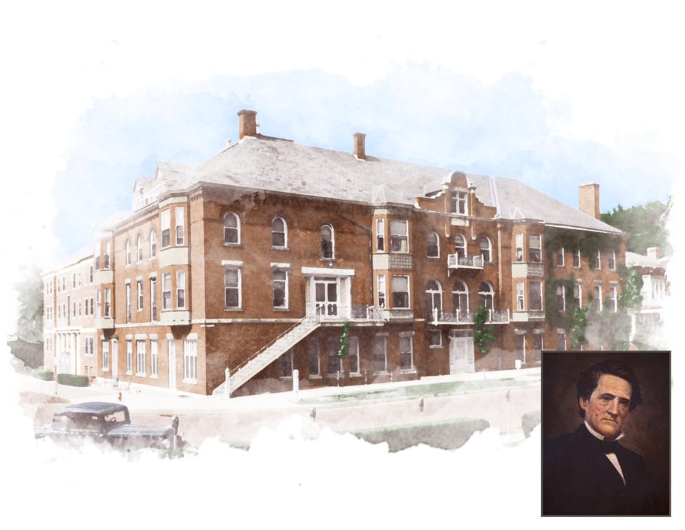 Built by the College Improvement Company, this residence hall was originally known as Women’s Hall. Ohio University rented the building until 1908 when it was purchased and renamed Howard Hall in honor of Solomon Howard, Ohio University’s sixth president, who served from 1852 to 1872. Howard Hall remained the sole women’s residence hall until Boyd Hall was constructed in 1906.
