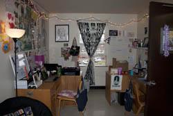 Rooms are fully air conditioned and furnished per person with a bed, mattress (80 inch XL-twin size), desk and chair, freestanding or built-in dressers, and closet space. Collectively the room shares the recycling bin, wastebasket, and microfridge. Bathroom tissue paper is provided in all residence halls