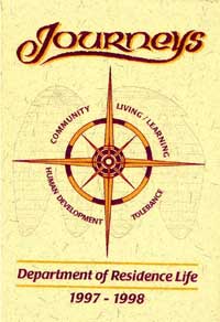 The use of "themes" was a longstanding tradition for the Department of Residence Life and continues to be central to the continuing work of the Department of Residential Housing. The purpose for annual themes is to have an annual focus that would relate to the goals of the department and serve as a symbolic reminder of the purpose of our work. As an added element, staff are given a small gift relating to the theme that serves to further remind staff of their important role in the department. The power of the theme has grown throughout time. There is also a tradition of keeping the theme a "secret" until Orientation begins, which helps to keep staff excited and interested in beginning their year. One remarkable aspect of the themes is that staff really do take an interest and have a personal investment in supporting the theme and its relation to the goals. What follows is a brief synopsis of the past themes.