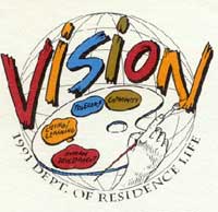 This theme was symbolized by a gift of a wooden artist's palette and paint brush. On the palette were four different colors of paint representing the four goals. The word 'vision' connotes the idea of a mental image or picture in one's mind. Staff develop a view of life in the halls that embraces the goals and values. By incorporating the goals of our department into each vision of life in the residence halls, we ensure the durability and persistence of that view.