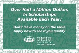 Complete the application at https://webapps.ohio.edu/scholarships or on your OHIO Student Center under the "Student Services Links". Students selected to receive scholarships and/or other financial aid will be notified via email in April.