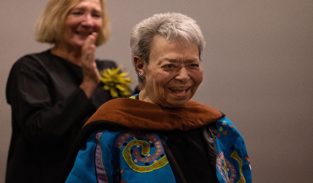 Gladys Bailin Stern, director of emerita and distinguished professor, smiles during the Honorary Doctor of Fine Arts ceremony.