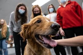 Stop by Alden Library and the Music & Dance Library at different times throughout the last two weeks of the semester to visit with therapy dogs, get creative making buttons, stretch out in an evening yoga session or visit with the Athens County 4H PetPALs.