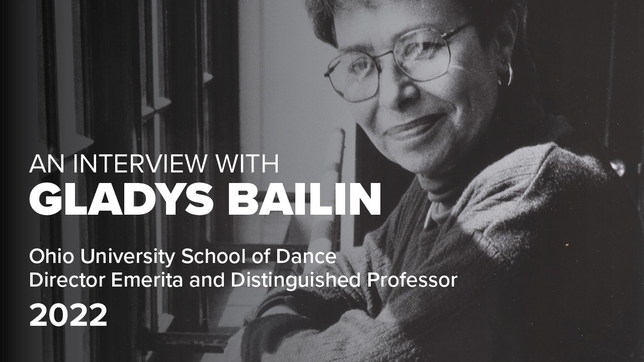 A tireless champion of dance as an art form, Gladys Bailin Stern has inspired generations of dancers with her keen wit, amiable humor and discerning eye. In her endeavors as a performer, choreographer, teacher, administrator and mentor, she is perennially creative, rigorous and energetic. In this interview, Bailin reflects on her early training in New York City with dance legend Alwin Nikolais, her international career as a performer and choreographer, and her impact on the School of Dance at Ohio University.