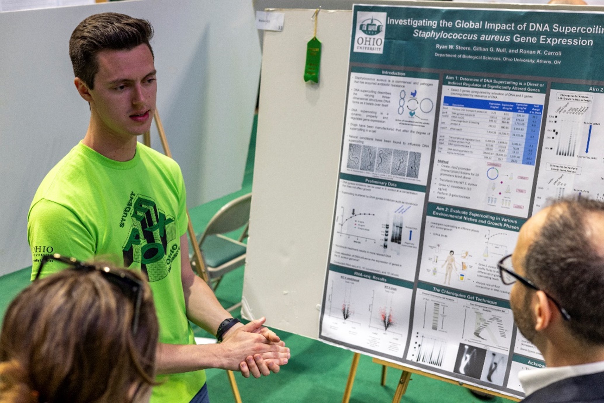 Ryan Steere, a graduate student working toward a master’s in biological sciences, was the recipient of the Libraries’ second-place graduate award for the project “Investigating the Global Impact of DNA Supercoiling on Staphylococcus aureus Gene Expression.” Steere’s research aims to help better understand how bacteria’s DNA shape impacts human disease.