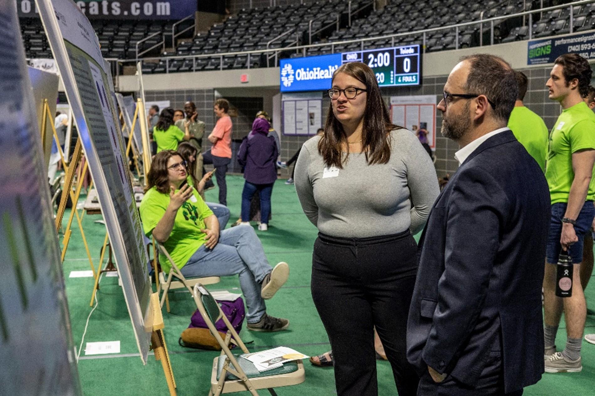 The annual Ohio University Student Research and Creativity Expo returned to in-person once more this year, as students, staff and faculty visited the Convocation Center to view the immersive research work done by the students. Every year, the Student Expo highlights some of the best undergraduate and graduate work that students at Ohio University have to offer.