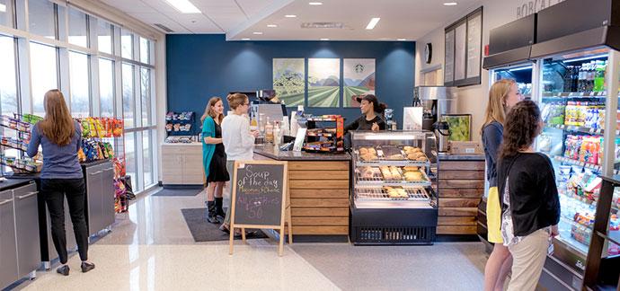 Through the support of the Heritage College Society of Alumni & Friends and in operational partnership with Paul's Family Vending and the Bureau of Services for the Visually Impaired (BSVI), the Bobcat Way Café serves up both hot and cold refreshing drinks, sweet treats, snack and lunch items to our students, faculty, staff and guests. The Bobcat Way Café is open Monday through Friday from 7:30 a.m. to 5:00 p.m. with adjusted hours during academic schedule breaks. Throughout the day and non-business hours, self-service vending is also available within the café seating environment for additional snack and beverage options.