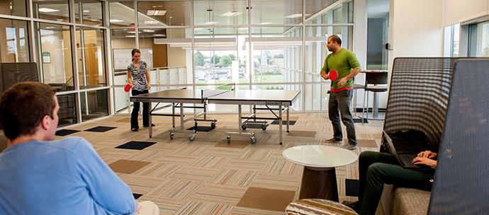 The student lounge, also known as the "Fun Room," offers students a place to relax and unwind when they need to take a break for a bit with fellow classmates. The lounge space offers users access to a gaming system, table tennis and a full cable television package to catch the news, game or show update between classes and as a break on nights and weekends.