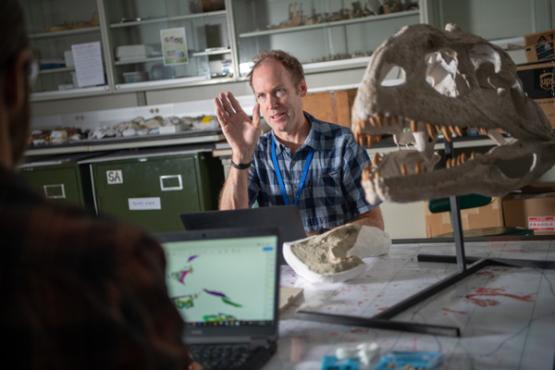 | Lawrence Witmer, Ph.D., professor, anatomy and Chang Ying-Chien Professor of PaleontologyExpertise at a GlanceWitmerLab explores the functional anatomy of vertebrates extending back into deep time, combining CT scanning and 3D visualization with more traditional anatomical methods. A major focus has been the soft tissues of the heads of dinosaurs and also the study of the anatomy and physiology of modern-day animals. |