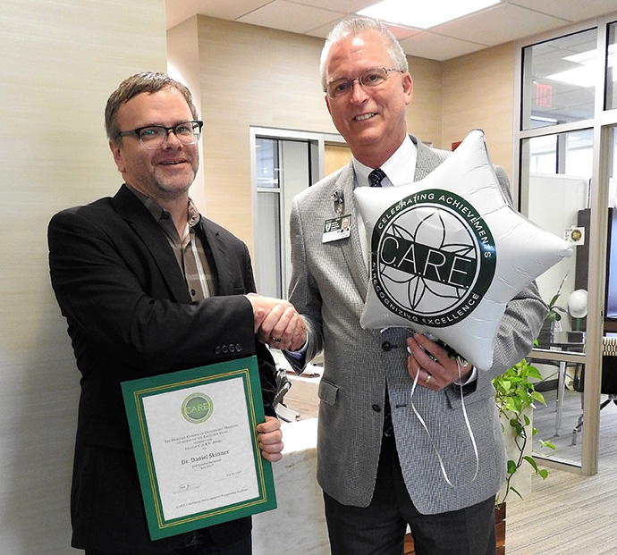 In fact, another nominator said Skinner’s ongoing support was one of the reasons the nontraditional student was able to readjust to the academic environment and successfully complete the first year of medical school. “Dr. Skinner was always there to talk with and give guidance,” said the nominator. “He helped me find a balance between the demands of school and always reminded me to take time for myself. He is a great mentor who pushes me to think outside the box, strive for knowledge and celebrate small accomplishments.”