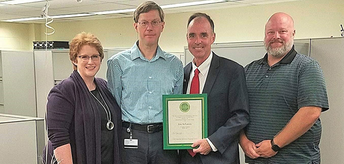 Dehmann’s upbeat personality and willingness to go the extra mile caught the attention of multiple nominators, including one who recalled a specific encounter crossing West Green on a rainy day. “The difference between the two of us was that John was performing his daily task with a broad smile on his face and with a sense of humor about our mutual misfortune where the weather was concerned. In his simple act of smiling and lending a kind word in an uncomfortable situation, he not only provided a ray of sunshine through the downpour, but ultimately, transformed a coworker's very negative attitude into a positive one through his quiet and joyful example. Sunshine most assuredly follows John through his day-to-day tasks despite intermittent ‘downpours,’ and we at HCOM Athens are so fortunate that he shares that with us so readily, graciously and consistently on a daily basis.”