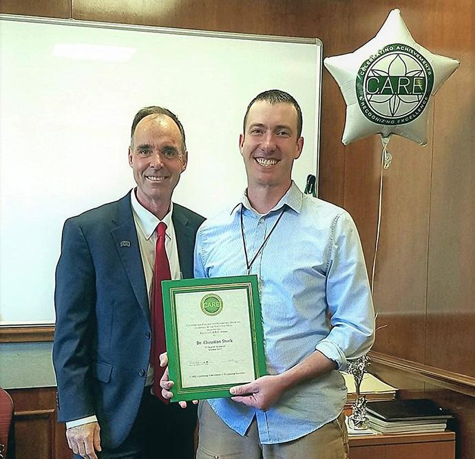 Physiology Lecturer Christian Stork, Ph.D., is known for going out of his way to make sure students fully understand the material he teaches. "During neurology anatomy, everyone fought to have Dr. Stork come to their table," said his student nominator. "He taught everything in such a clear and concise way. He also came up with great ways for us to remember things."