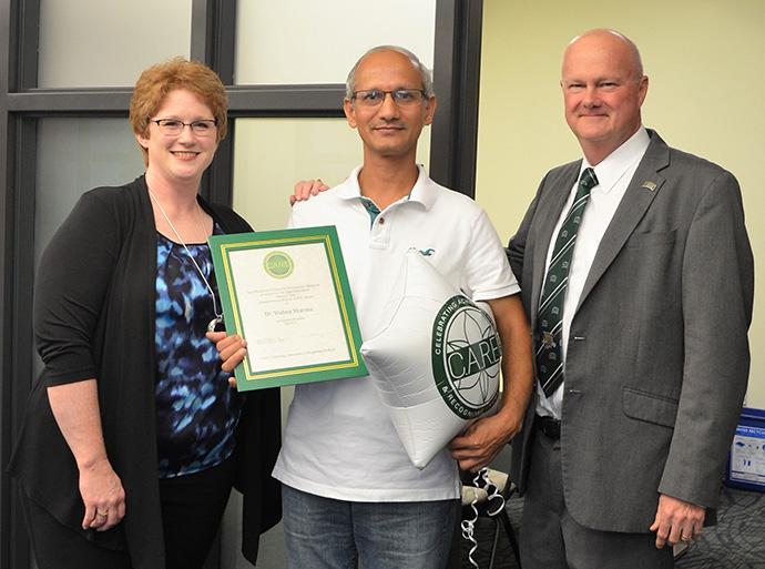 Through his caring and compassionate nature, he touched the lives of 20 prospective medical students. At the conclusion of the course, Summer Scholars noted that Sharma was an open, caring, knowledgeable and available professor with a sense of humor. In fact, the students were so grateful for Sharma’s assistance that they all chipped in and coordinated a catered lunch to thank him on their last day of instruction. “Dr. Sharma did not have to teach in the Summer Scholars program,” said his nominator. “He did so willingly and he cared enough to put time, energy and creativity into teaching a subject that many find challenging. Although he is a soft-spoken man, the passion Dr. Sharma has for students and teaching resonates loudly and clearly to those around him.”