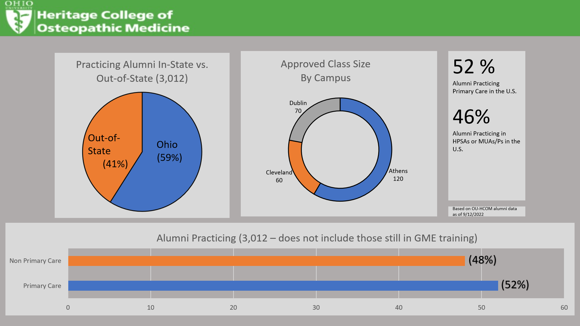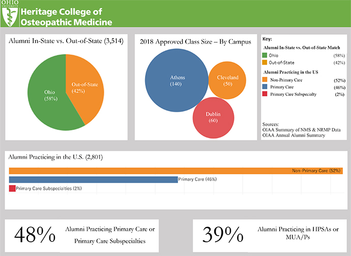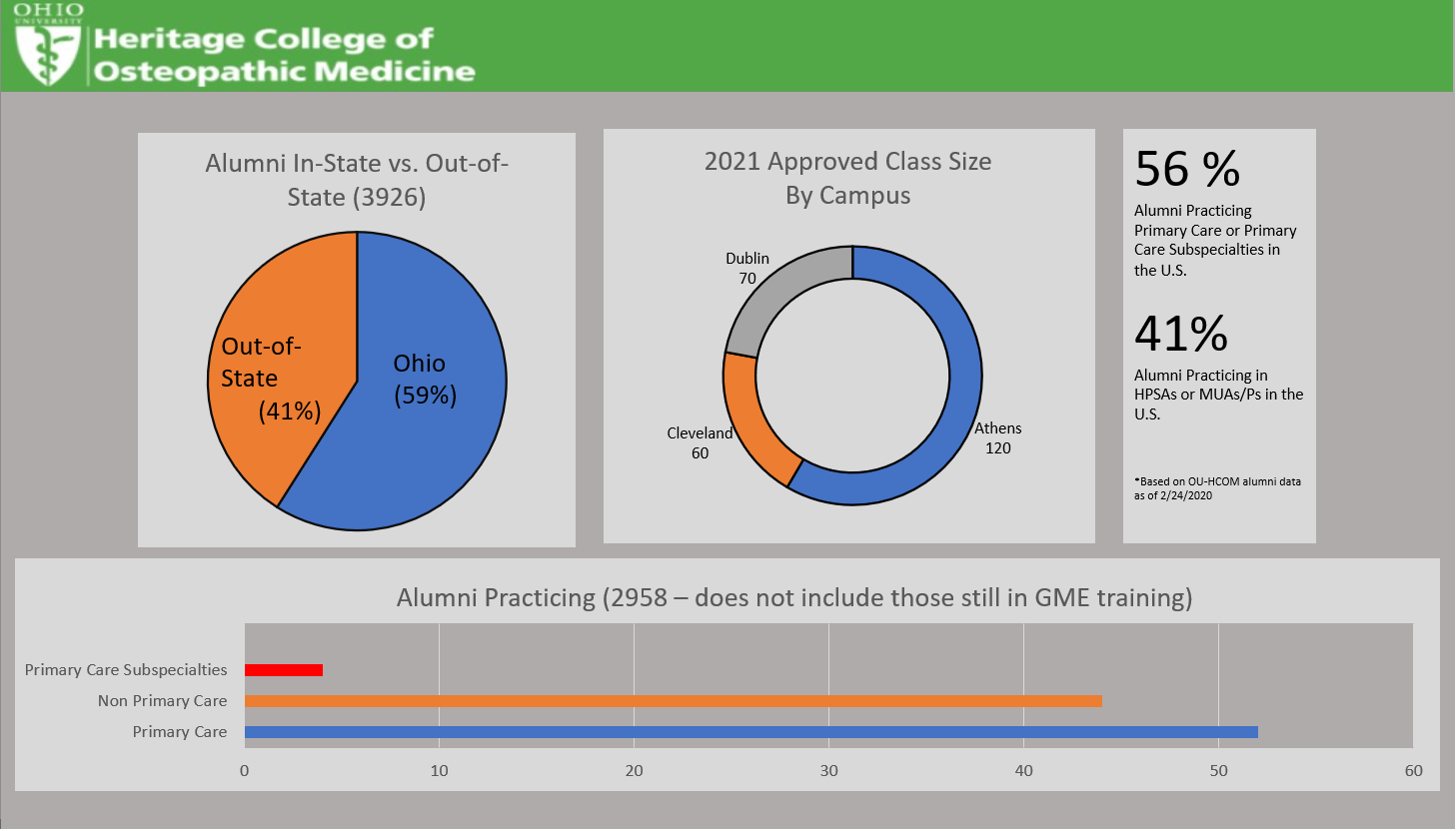 The Office of Institutional Assessment and Accreditation provides content expertise, leadership and consultation services to advance evidence-based medical education and inform decision making to support the success of Ohio University Heritage College of Osteopathic Medicine in meeting its academic, research, service and clinical missions. The OIAA uses and promotes the use of the best practices in medical education, assessment and evaluation; advances a culture of assessment and continuous quality improvement; conducts evaluation studies and research to inform decision making; and serves as a resource for administrators, faculty and staff.