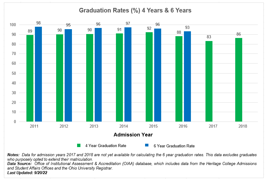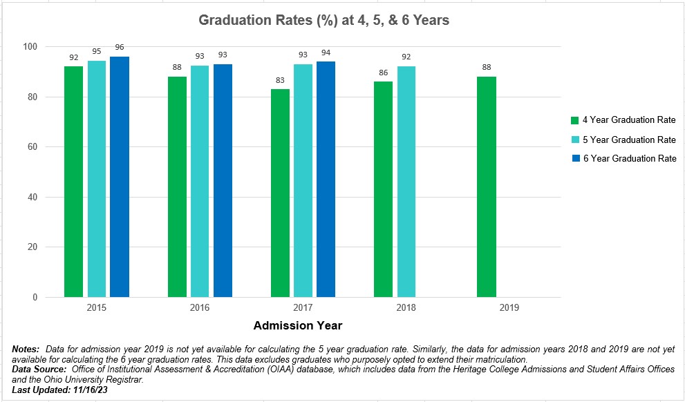 Data Source: Office of Institutional Assessment & Accreditation (OIAA) database, which includes data from the Heritage College Admissions and Student Affairs Offices and the Ohio University Registrar.