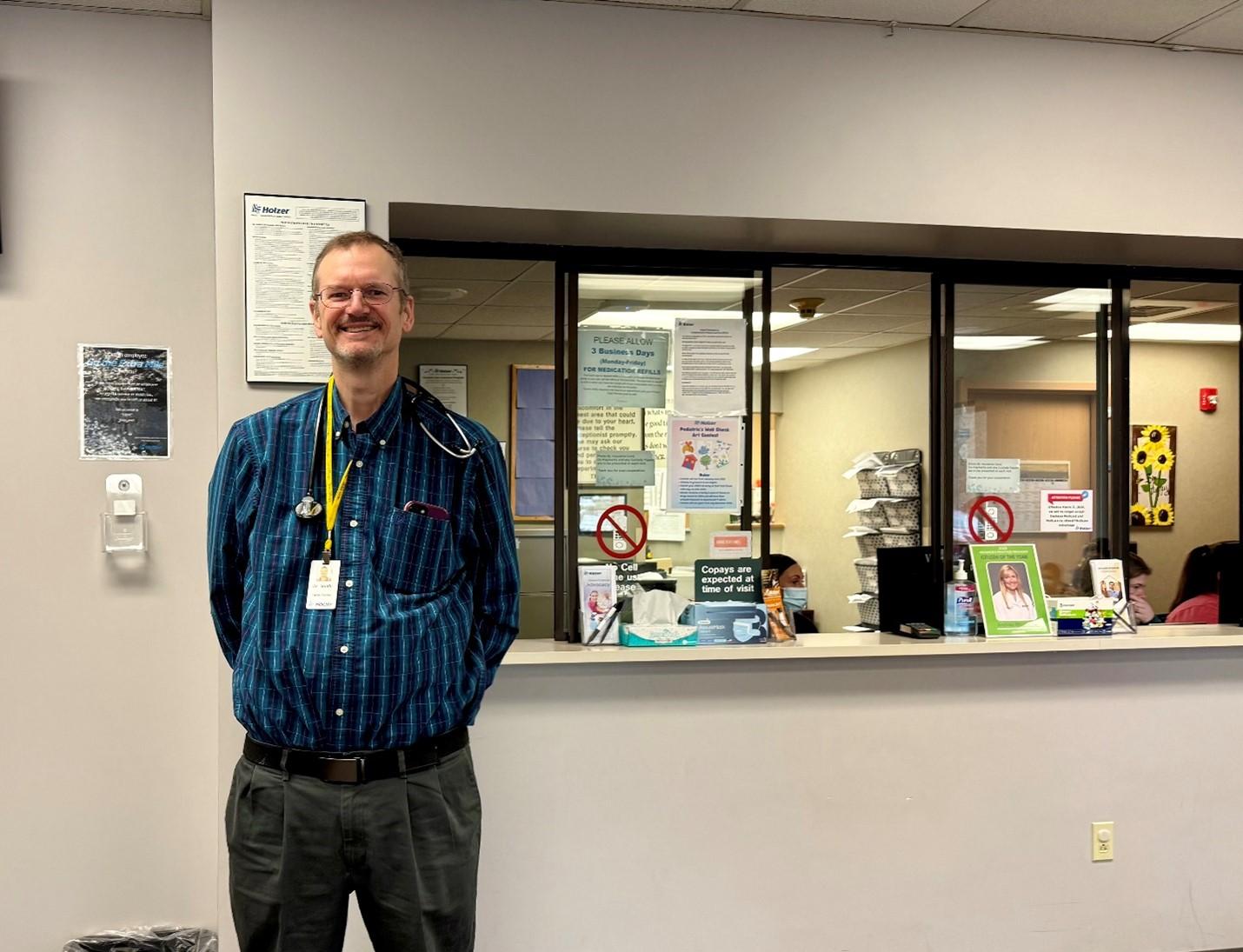 When Scott Smith, D.O., walks into the waiting room, it’s with the stoop of a man used to ducking doorways. The breadth of his frame is at odds with his unpresuming manner and the soft measure of his voice. He asks if he needs to speak up as I turn my recorder towards him for our interview and I reassure him no; we’re speaking in a small exam room after all, a fitting space to ruminate on a long career as a rural family practitioner. He’s a month away from retirement after serving 28 years at Holzer and he touches on the reason, his eagerness to spend time with his parents and take care of their needs as they age in place in their home on the east coast.