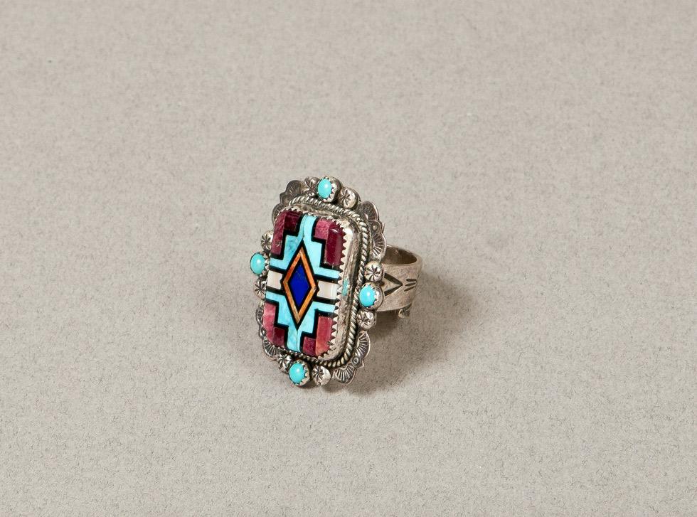 Thanks to the generosity of Ohio University alumnus and Museum namesake Edwin L. Kennedy, Ohio University possesses a unique and culturally significant collection of Southwest Native American art. Kennedy Museum of Art’s Edwin L. and Ruth E. Kennedy Southwest Native American Collection includes nearly 700 textiles and more than 1700 jewelry items of Navajo, Hopi, and Zuni origin.