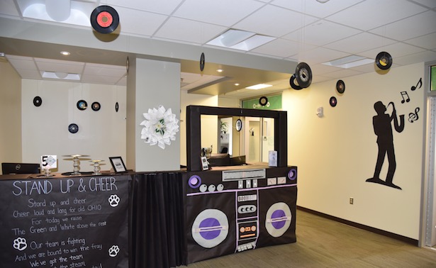 undefinedThis year's Homecoming theme brought out The Annex Office for the Office of the Vice President for Student Affairs' musicality. They took home the coveted Cutler Cup for adorning their office in music notes, records and other musical art. (Photo by Joanna Stoltzfus.)
