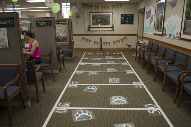 undefinedThe Chubb Cup was awarded to The Office of Student Financial Aid and Scholarships for its balloon-filled recreation of Peden Stadium, complete with an office-sized football field and goal posts.