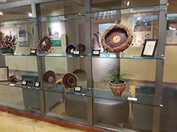A few of the pieces in the gallery are: hand-painted pictures of flowers; ceramic, wheat berry bread and glass fusing pieces; wreaths and flower arrangements; and long-leaf pine needle baskets.