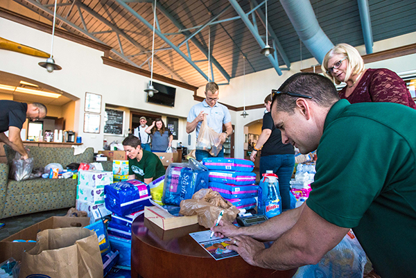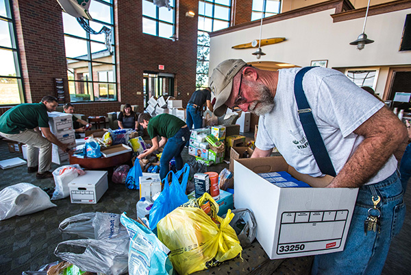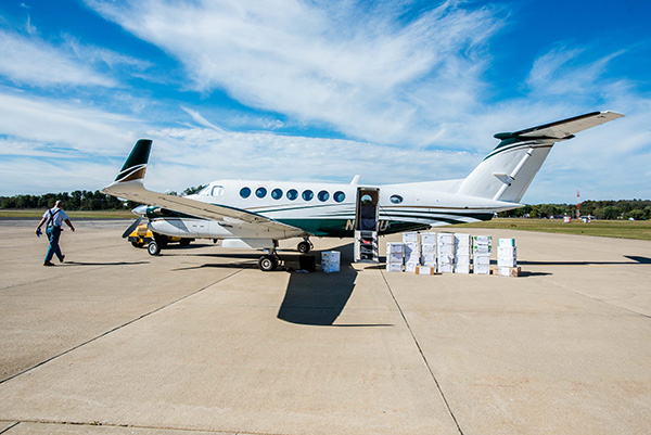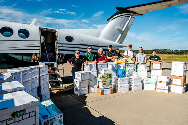 Volunteers gathered the supplies in Grover Center and took them to the Gordon K. Bush Airport, where they were packaged and loaded aboard the University plane.