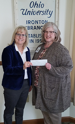Photo courtesy of: Tina CanterLynne Fruth (left) presents Ohio University Southern Director of External Relations, Sarah Diamond Burroway (right) with a check for $4,000.