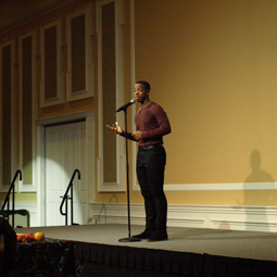 Photographer: George E. Mauzy Jr.Freshman Avery Pope delivers spoken word about Kwanzaa during the event