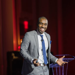 Photographer: Ben SiegelBrunch keynote speaker delivered a strong MLK-themed message during the Jan. 15 Brunch in Baker Center Ballroom
