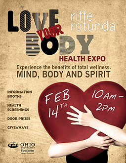 IRONTON, Ohio – Since 2011, the Love Your Body health fair and educational event has been hosted each February at the Southern Campus to encourage participants to consider their self-care and well-being. Open to the public, this year’s event will be from 10 a.m. – 2 p.m. Feb. 14 in the Mains Rotunda of the Riffe building.
