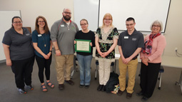 Photo courtesy of: Classified SenateChasity (center holding certificate) was surprised to win the February Classified Employee of the Month award.