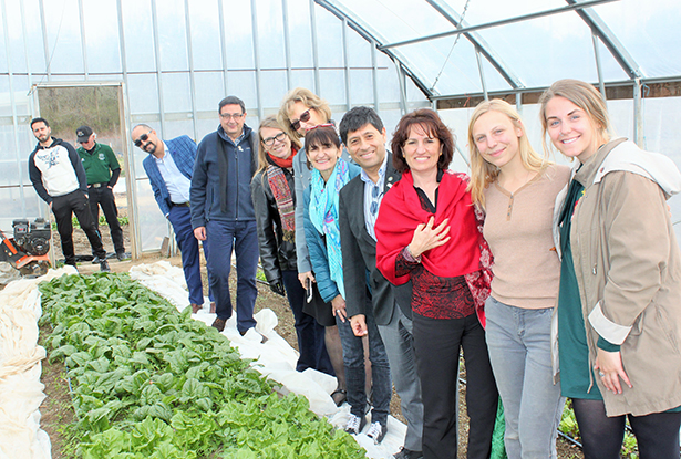 Members of the PUCE delegation and Ohio University community visit the Plant Biology Learning Gardens off West State Street. Pictured (from left) are Christian Santiago Rodas Saa, an OHIO student who was serving as a translator; Clark Reed, an OHIO transportation associate; César Eduardo Carrión, dean of PUCE’s College of Communication, Linguistics and Literature; Francisco Pérez Pazmiño, dean of PUCE’s College of Medicine; Dawn Bikowski, director of OHIO’s ELIP Academic and Global Communication Program; Theresa Moran, an assistant professor in OHIO’s College of Arts and Sciences and director of the college’s Food Studies theme; Marleen Haboud, a linguistics professor and researcher at PUCE; PUCE Rector Fernando Ponce Léon; Graciela Monesterolo Lencioni, PUCE’s provost; and Ohio University students Julie Scott and Joy Kostansek. Photo courtesy of the Office of Global Affairs