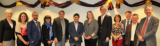 The welcome reception concluded with an informal discussion, during which members of the PUCE delegation and the OHIO community reflected on OHIO-PUCE collaborations already underway and explored areas of mutual interest between the institutions. Terri Hood-Brown, an assistant professor of nursing in the College of Health Sciences and Professions, took the opportunity to introduce herself to members of the PUCE delegation, noting that she will be accompanying a group of 15 OHIO students to Ecuador in June for a study abroad program. The 2.5-week program, designed for nursing and Heritage College students but open to all OHIO students, caters to students interested in learning about the intersection of community and clinical health and the practice of health care in another country in both rural and urban settings. Hood-Brown noted that three students participated in the program last year and the positive experience they had boost student interest in the program this year. Theresa Moran, an assistant professor in the College of Arts and Sciences and director of the college’s Food Studies theme, shared a little about the innovative seed-saving collaborative work and research occurring amongst OHIO and PUCE faculty as well as community partners in both countries. OHIO’s Innovation Strategy awarded a team led by the College of Arts and Sciences’ Dawn Bikowski a $20,000 planning grant to study seed-saving initiatives in Athens, Ohio, and Quito, Ecuador. The study addresses a top priority identified by the United Nations and explores how seed saving can impact food sovereignty, food security and sustainable living. In December, a delegation of faculty from a few departments within the College of Arts and Sciences traveled to Ecuador to work on the study with their peers at PUCE. In January, their peers at PUCE visited OHIO to learn about seed-saving efforts in Southeast Ohio and to share what they’ve learned in their country. In discussing future partnerships, Dr. Ponce emphasized a need for innovation and building new areas of interest from scratch, something he dubbed “Collaboration 2.0.” As an example, he mentioned the possibility of developing a master’s program focused on a global issue, such as health or the environment that could evolve in both countries. Greg Newton, the Scripps College of Communication’s associate dean for graduate studies, research and creative activity, said he was struck by PUCE’s emphasis on innovation and shared with the delegation information on the Scripps Innovation Challenge. The University-wide competition calls upon students to create innovative solutions to real-world media and communication problems. Betsy Partyka, an associate professor and chair of the Department of Modern Languages, expressed interest in developing an OHIO-PUCE relationship that involves the humanities, noting her department currently does not offer a study abroad opportunity in Ecuador. Emmanuel Jean Francois, an associate professor of educational studies, noted his interest in forging a partnership between PUCE and OHIO’s Patton College of Education. As OHIO and PUCE continue to develop opportunities for faculty and student exchanges, Mike Boyle, a senior scientist at OHIO’s Edison Biotechnology Institute, emphasized the need for immersive experiences that foster a greater sense of cultural sensitivity. Janet Duerr, an associate professor of biological sciences, advocated on behalf of OHIO students pursuing degrees in the fields of science who often struggle to be able to take advantage of the University’s rich study abroad opportunities due to their rigorous academic programs. Dr. Duerr suggested developing study abroad programs that incorporate required coursework these students need to graduate. Diane Cahill, director of operations for OHIO’s Office of Global Affairs and International Studies and interim director of International Student and Faculty Services, noted the importance of developing programs that include academics as well as community service. In doing so, she said, students, faculty and staff become more immersed in the communities, interact with people from different backgrounds and make connections they otherwise may not. Conversations concerning the future of the OHIO-PUCE relationship continued throughout the week, with Dr. Ponce aptly noting, “At first, I was seeing our connections as an arrival point. Now, I see them as a starting point.”
