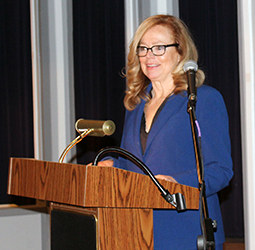 The Honorable Jennifer L. Sargus, retired Belmont County Court of Common Pleas judge, addresses the audience at the “Women in Leadership” seminar at Ohio University’s Eastern Campus.