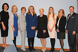 Pictured (from left) are Ginny Favede, Elizabeth Hofreuter-Landini, Denise Penz, the Honorable Jennifer L. Sargus, Kelly Bettem, Leia Hunt, Diana Crutchfield, and E. J. Schodzinski, director of external relations at Ohio University Eastern.