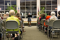 Photo courtesy of: WOAPPoet Susan Truxell Sauter reads her work during a "Women Speak" event at the Ohio University Southern campus.