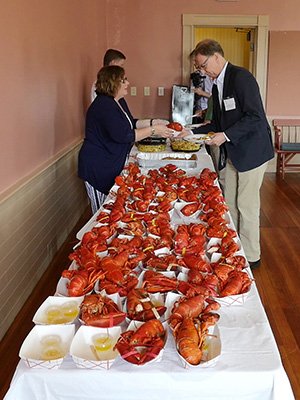 Lobster Fest attendees pick from fresh lobsters before the start of Lobster Fest’s feast at the Rockport Community House.