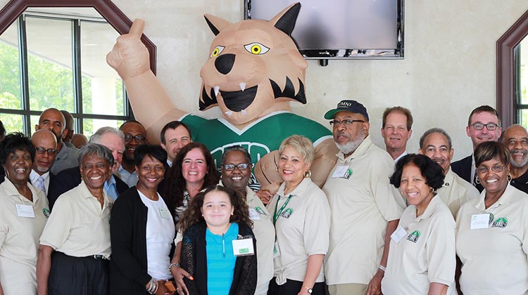 A group of attendees pose during the Ebony Bobcat Network’s (EBN) Alumni Weekend 2015.