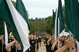 Photo courtesy of: University Communications and MarketingMarching 110 members march up Richland Avenue